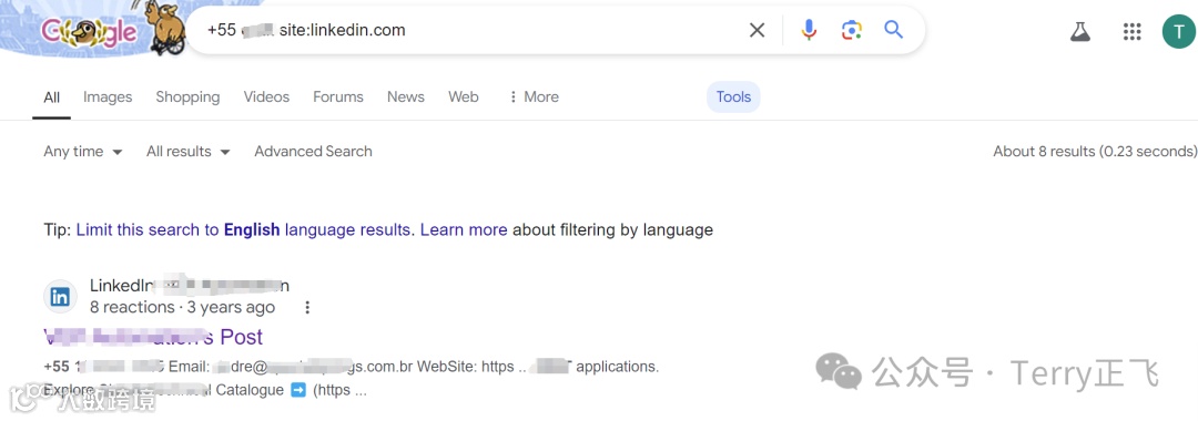 然后,你还可以限制在领英的巴西站去再搜索看。