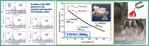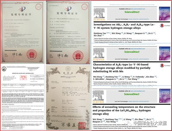 2014年,包头稀土研究院储氢材料研发团队发现钇(Y)元素能够抑制二元La-Ni合金的氢致非晶化,自主开发了新一代高容量La-Y-Ni系储氢合金材料,同时解决了前两代储氢合金产品存在的主要问题。截至2019年,已经分别获得中国、日本、美国发明专利授权,在Int.J.Hydrogen Energy期刊连续发表了3篇研究论文,引起了本领域研发人员的关注。稀土储氢合金材料体系的创新使我国在该领域从“跟跑”状态进入“并跑”阶段,通过快速推进基础研究与产业开发工作,期望形成“引领”态势。