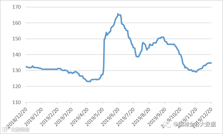 图1 镨钕系轻稀土挂牌价格走势(201712-201912)
