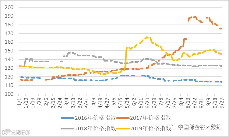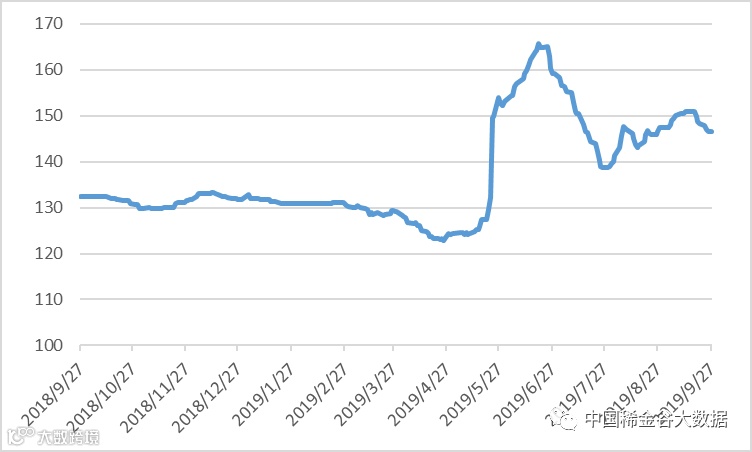 图1 镨钕系轻稀土挂牌价格走势(201709-201909)