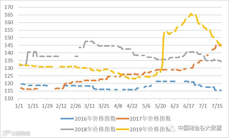 2016-2019年稀土价格指数同期走势图