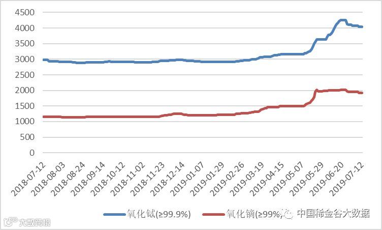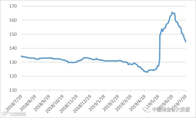 图1 镨钕系轻稀土挂牌价格走势(201709-201907)