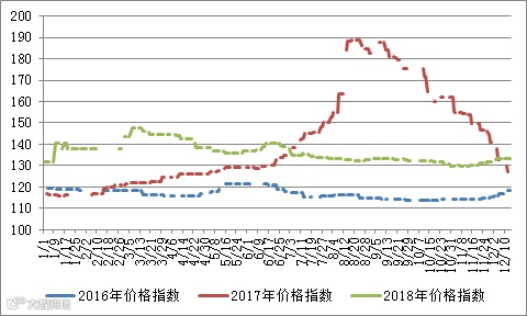 2016-2018年稀土价格指数同期走势图