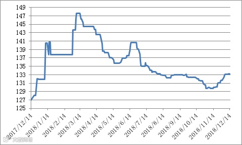 本周有五个交易日,稀土价格指数走势本周较为平稳,分别为133.1、133.1、133.2、133.2、133.1,与上周持平。近一年走势见20171206-20181207区间稀土价格指数走势图。对比2016及2017年同期,2018年的价格指数已超过2017年,稀土市场整体向好,见图2016-2018年稀土价格指数同期走势图。