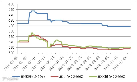 2018年氧化镨(钕、镨钕)价格走势图 元/公斤