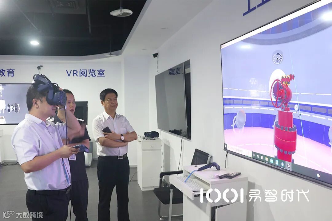 听完企业汇报后,工经联崔会长一行前往XR世界·体验厅,近距离体验了易智时代打造的1001数字孪生智慧平台、1001智慧教育平台、1001职业技能XR实训平台和5G融媒体平台以及工业能源XR产品、VR射击、VR空军座舱等产品。并亲身感受到数字孪生和虚拟现实职业技能实训在赋能传统行业的数字化转型上的技术优势。体验后各行业协会秘书长及企业领导纷纷表示对易智时代在数字孪生技术上的产品研发、落地应用、成果转化等方面表示了充分的认可。