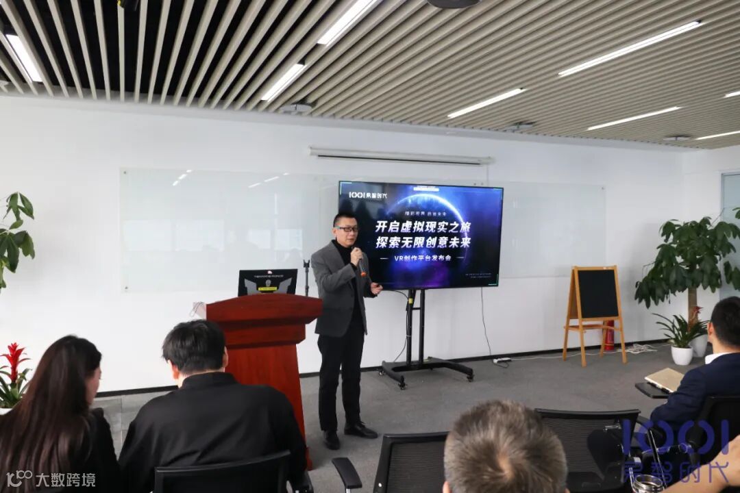 易智时代首席运营官李劲青发表了热情洋溢的开场致辞。他回顾了VR创作平台从今年4月25日开始构思、组建研发团队,历经230天,小伙伴们加班加点,不分节假日,产品如期完成并在今天正式发布。这是公司从项目到产品的一小步,却是易智时代发展中的一大步,意义深远。他强调,创新不仅仅是技术部门的事情,产品是大家的,公司前台、售后等各个部门的每一个人都要积极宣传、勇于推广,及时反馈客户需求,以便不断技术改进和品质提升。