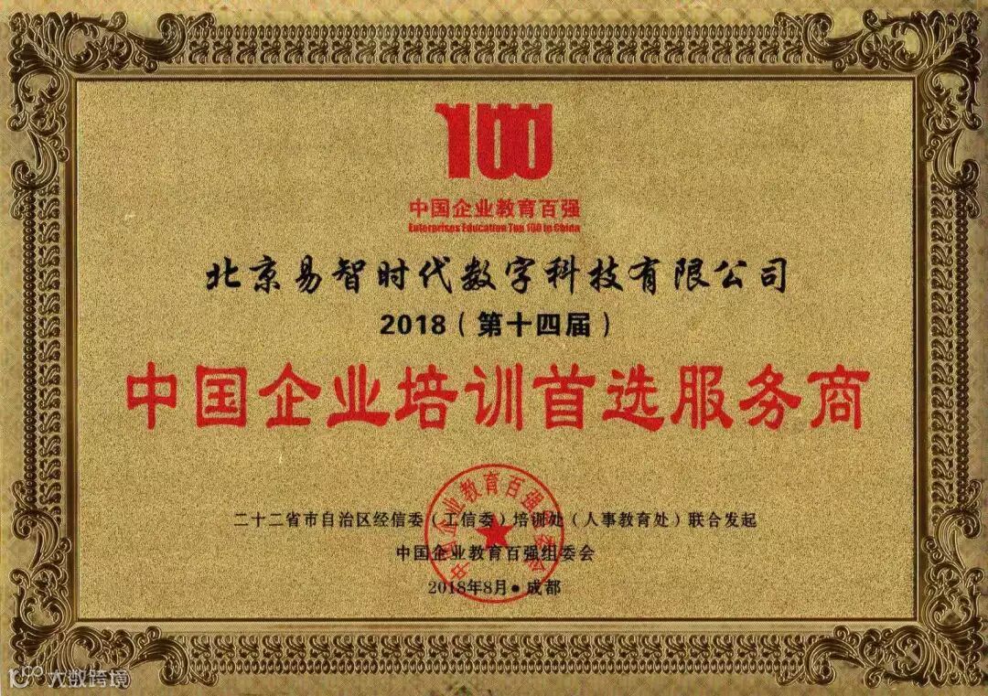 8月底,易智时代受邀参加第十四届中国企业教育百强年度盛典,并荣获2018年"中国企业培训首选服务商"称号。
