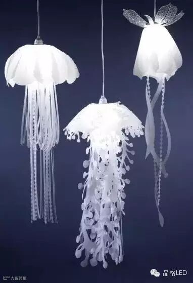 如果你对海洋世界感兴趣,这组水母吊灯你或许会喜欢。它出自美国室内设计师RoxyTowry-Russell之手,带着女性特有的柔美空灵的设计视角。柔和飘逸的乳白色主体加上底部形态各异的长长流苏,如游弋着的水母般飘逸灵动,让人仿佛置身于海底世界。