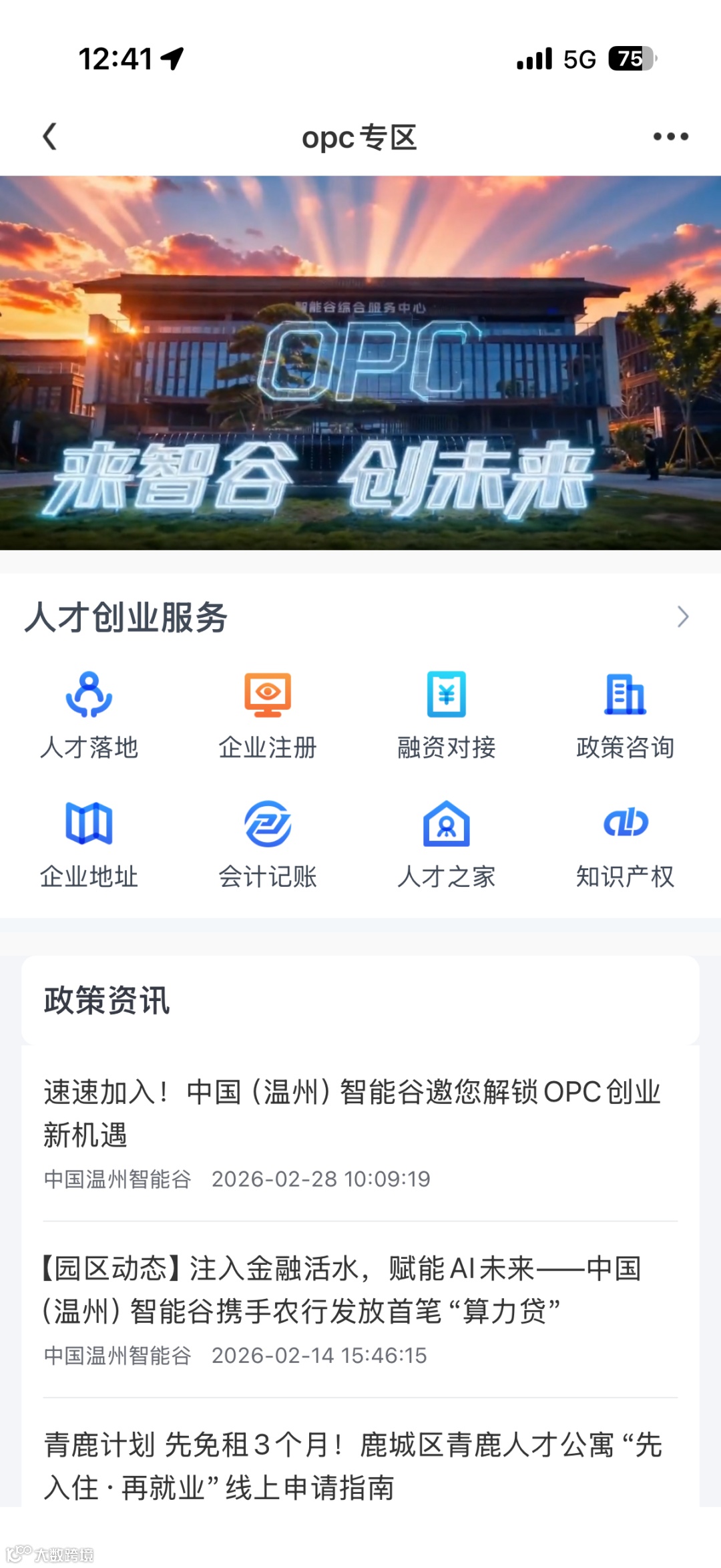 专区承载着中国(温州)智能谷“OPC来智谷·创未来”的服务承诺,通过数字化平台,将园区的产业氛围、专业服务与资源网络无缝延伸至您的掌心。这里是您了解智能谷、融入鹿城创新生态的第一窗口。