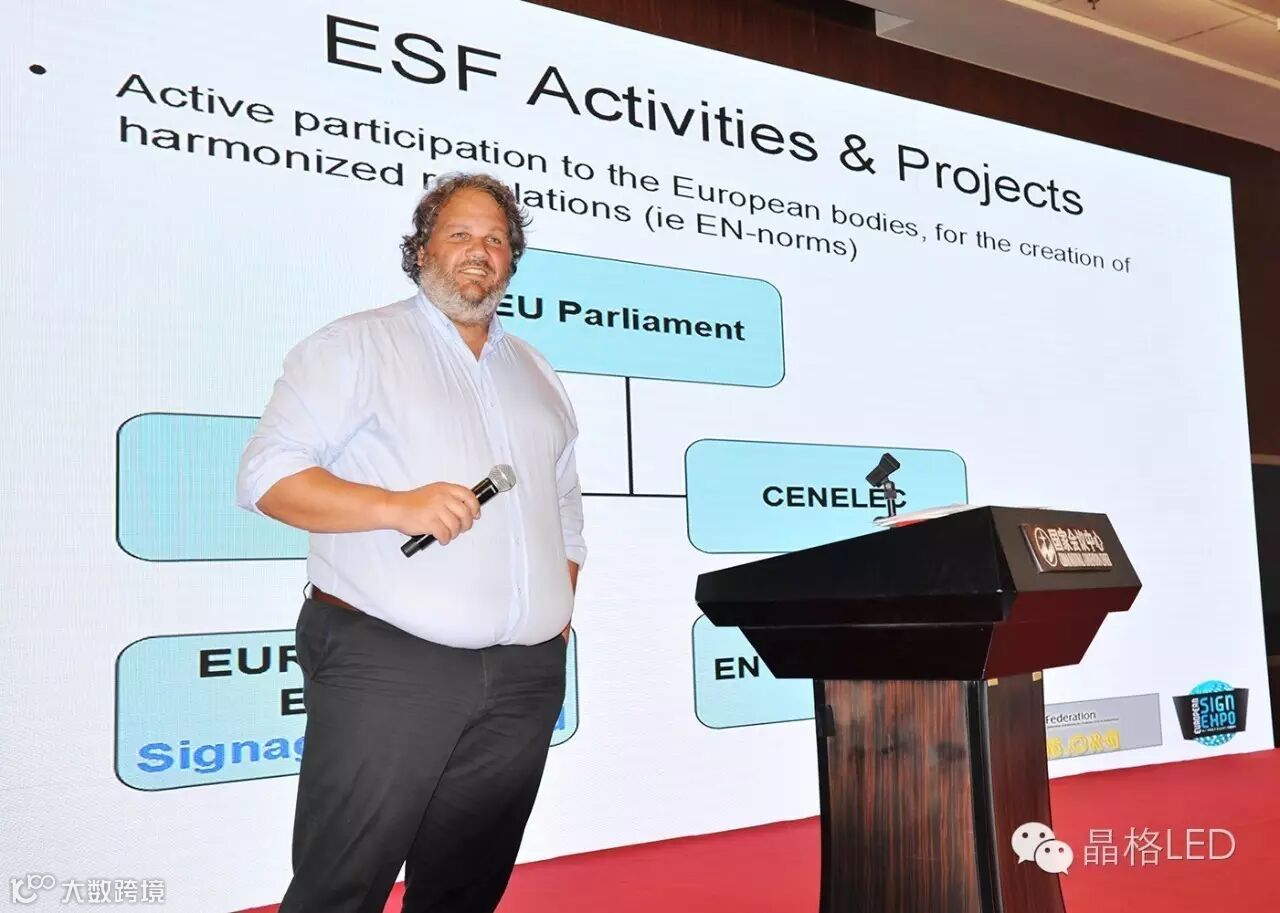 欧洲标识联合会副主席在会上介绍欧洲标识行业发展的新方向新技术。