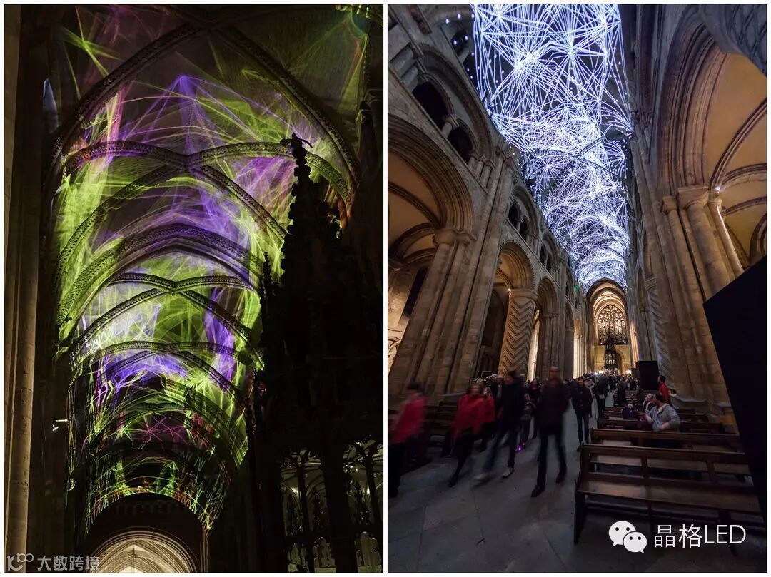 今年的 Lumiere 灯节已经是第四届了。它最初于 2009 年举办时本来只计划做一个一次性的活动,杜伦市政府委托创意公司 Artichoke 带这座城市来些精彩的艺术装置,鼓动公众参与进来。灯节很受欢迎,口碑好而且在短期内实打实地增加了本地经济收入,于是这个灯节也就延续下去,每隔两年举办一次。这个时候,11 月下旬寒冷的杜伦也会变得温暖而热闹起来。