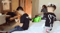 吴所谓小朋友“偷袭”看手机的爸爸