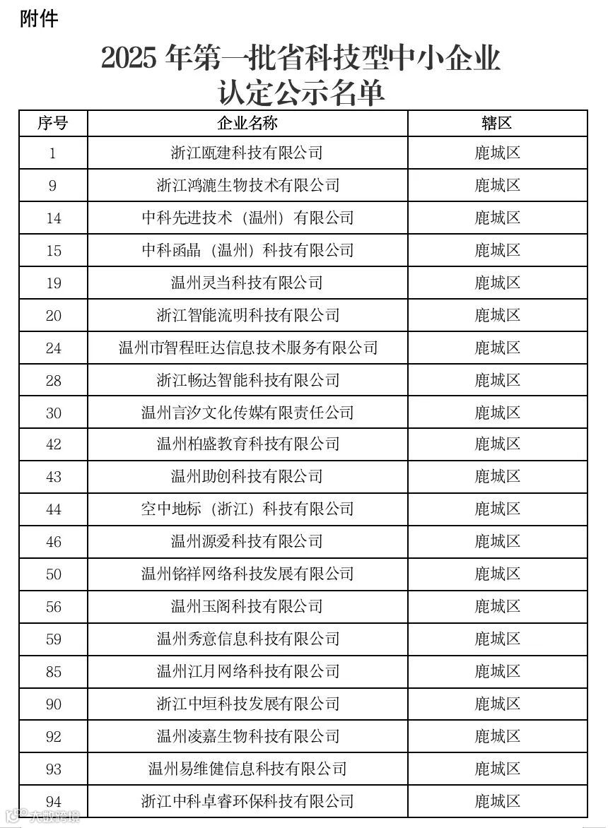 了《2025年第一批省科技型中小企业认定公示名单