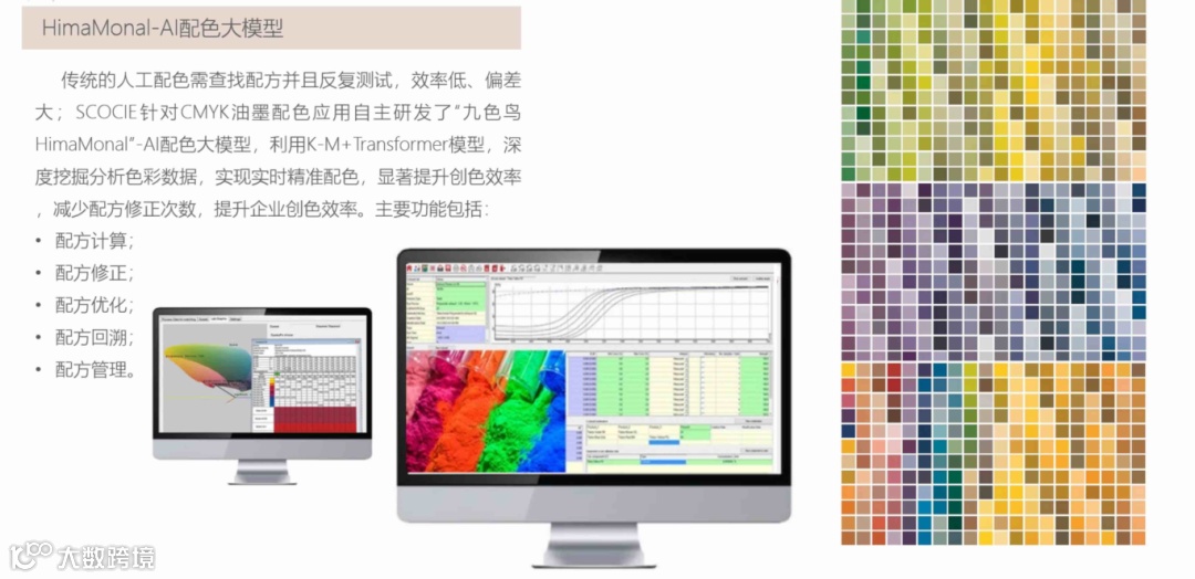 SCOCIE已构建覆盖纺织印染、数码印刷、美容美妆、成像显示、生物医疗、文物复原、食品饮料等多领域的AI颜色测量与分析、AI判色、AI追色、AI色差分析以及全栈式颜色管理服务平台系统。主要产品包括:多光谱颜色测量与分析系统、色牢度自动评级系统、镭射纸颜色检测仪、HimaMonal-AI配色大模型、ICC-AI追色系统、数字化即时纱线着色系统、Max25Y色纹质-AI服装T台秀等。