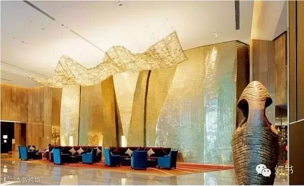eLicht:新天希尔顿的大堂非常有设计感,那个群山叠嶂一样金属质感的形象墙和那盏白云一样的水晶吊灯都让人印象非常深刻,这两个地方都非常依赖优秀的灯光体现,也是其中的难点吧?