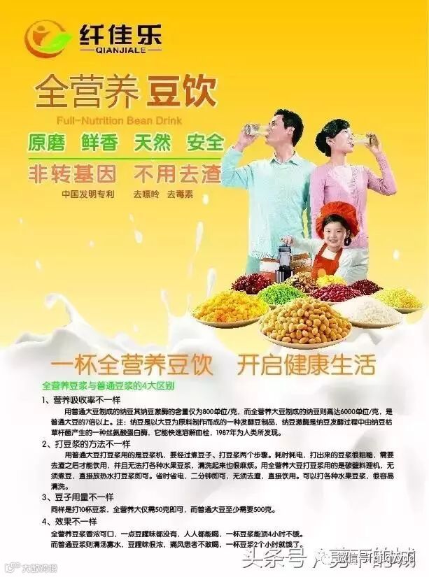 纤佳乐全营养豆浆与普通豆浆的4大区别