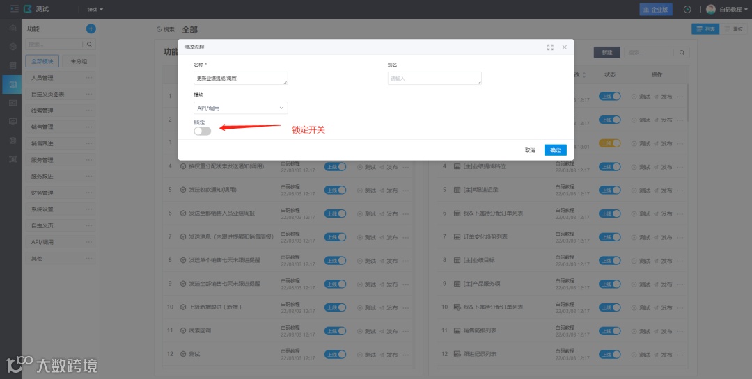 可将开发完成或者重要的功能流程进行锁定操作,锁定后需要解锁才可再次进行功能流程的编辑。这个功能在多人协同开发时十分有帮助。