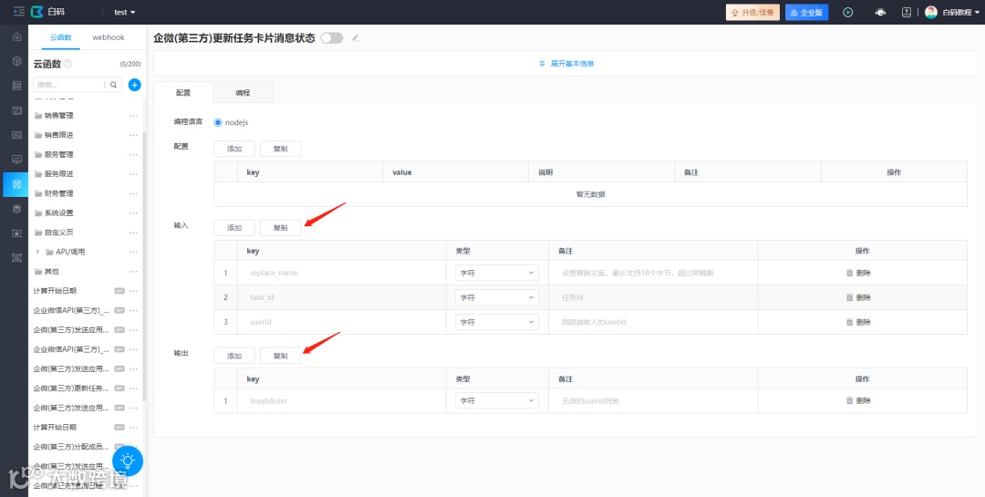 API对接-云函数参数复制功能