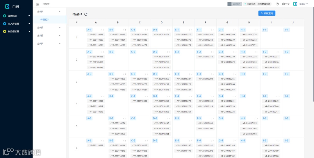 1.统一的样品信息管理和样品查询界面,能够帮助实验人员快速定位到样品所在位置。