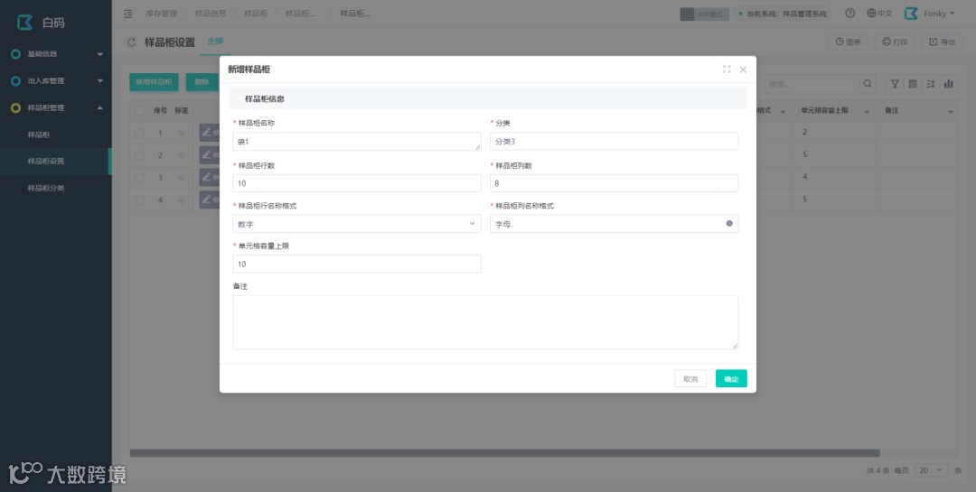 4.可以自定义样品柜的分类、结构、存放样品的容量等。