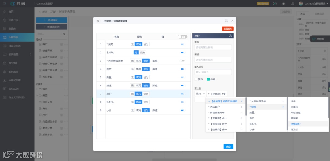2.针对客户等级使用不同单价的问题,商品列表中记录了三种客户等级对应的默认单价,并在新建销售单的功能中,会先判断选择客户的等级,不同等级执行不同的流程步骤,分别使用不同的单价作为默认值;