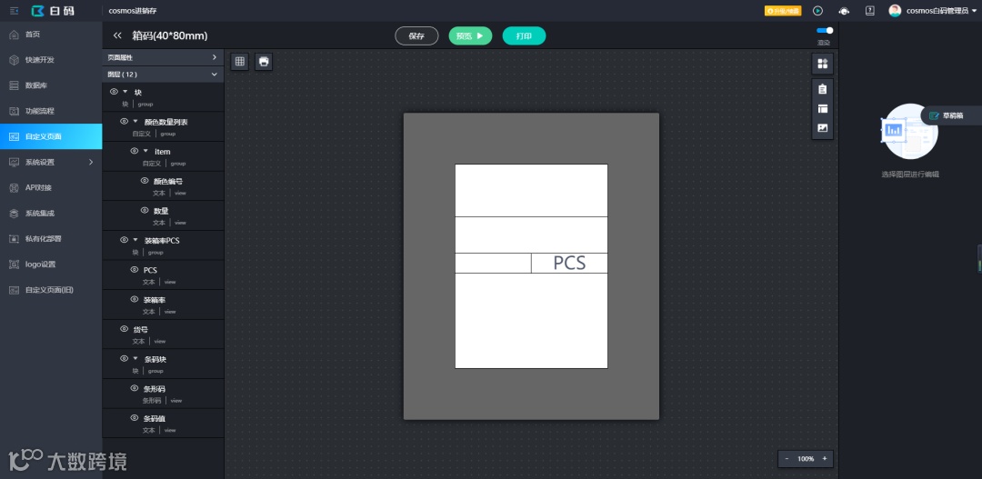 4.通过使用白码的自定义打印功能,可以快速打印出所需箱码;
