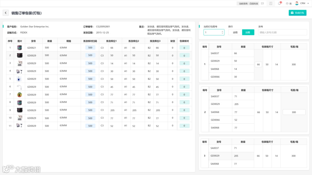 5.打包时需要同时查看销售单明细和打包箱的信息