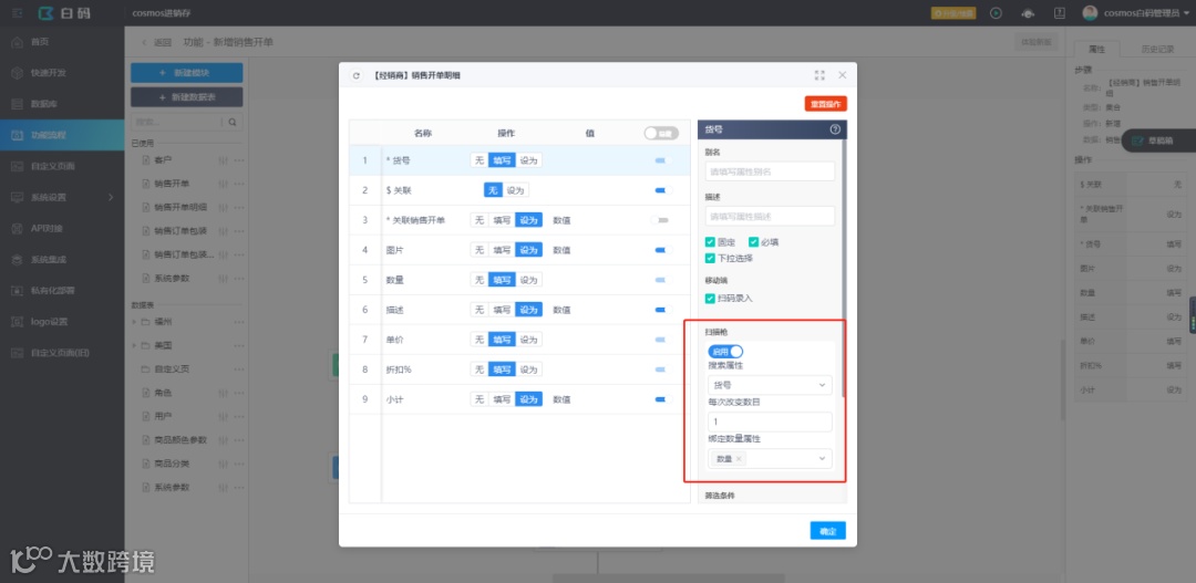 3.使用白码平台扫描枪的功能,可以让用户通过扫码的方式录入销售订单明细;