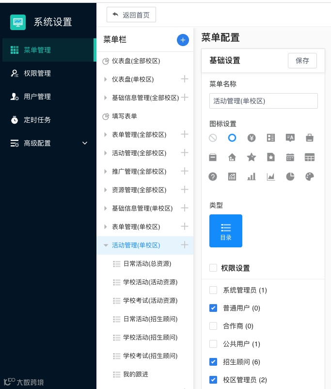 采用多帐套+权限管理的方式,完成多校区的综合管理。各个校区不仅可以独立运作,总部还可以提供有效监管和帮助。