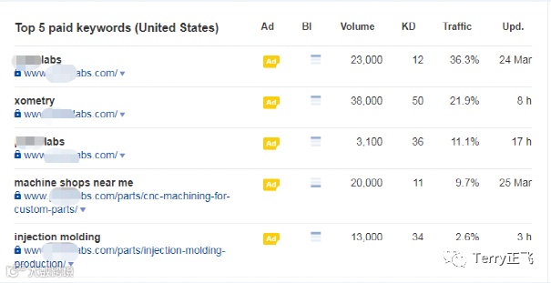 首先,是机加工行业,Ahrefs拉下数据: