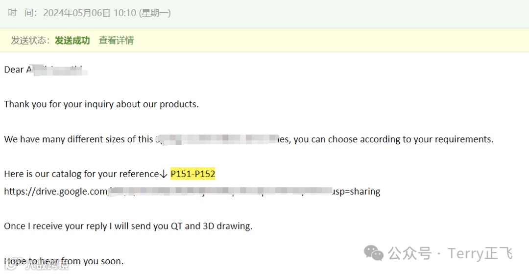 基本上,新询盘,我也会建议业务员,在第一封回复过去的时候,不要带任何的附件,链接,图片,甚至是带图片的签名也不要有。