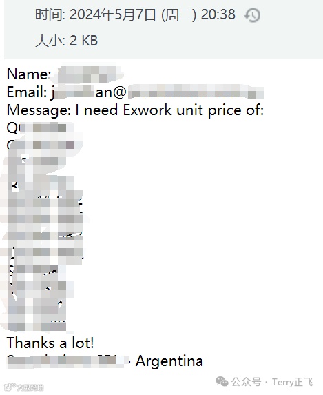 刚刚收到一封新询盘: