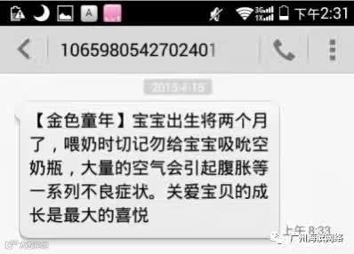 金色童年的知信营销可以说非常的成功,因为他们针对的是我们这些有孩子的父母,他们知道我们需要什么。所以,他们就以短信的方式一个月左右的时间发一次健康提醒,及需