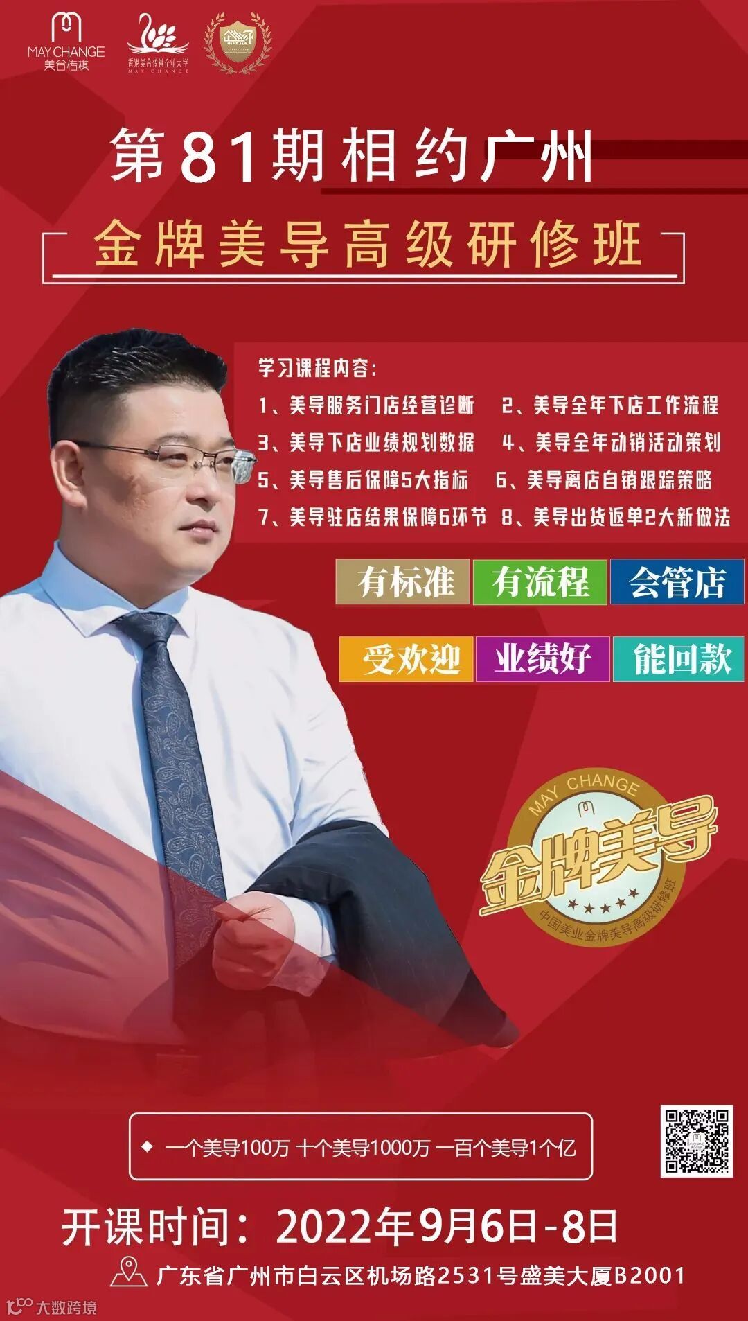 你们好!欢迎您参加美合传祺第81期《金牌美导高级研修班》,美合传祺全体小林人感谢您对本课程的关注和大力支持,并热烈欢迎您的到来。在2022年9月6-8日这3天2夜的时间里,我们将会与大家共同探讨,共同成长,透过学习,成为一名金牌美导。为此,我们会务组也会以最高的服务品质让同学们轻松、快乐的享受学习旅程。美合传祺全体小林人祝您学习愉快!