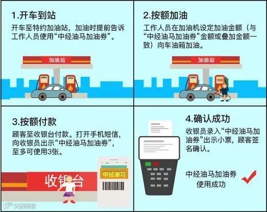 ④ 抢购到100元中经油马加油券的客户,券限福建全省中经汇通合作加油站使用,可加0#、30#、92#、95#、98# 等不限油品,加油电子券即买即用,单笔加油消费可最多使用3张叠加,具体合作油站地址请进入活动页面查询。