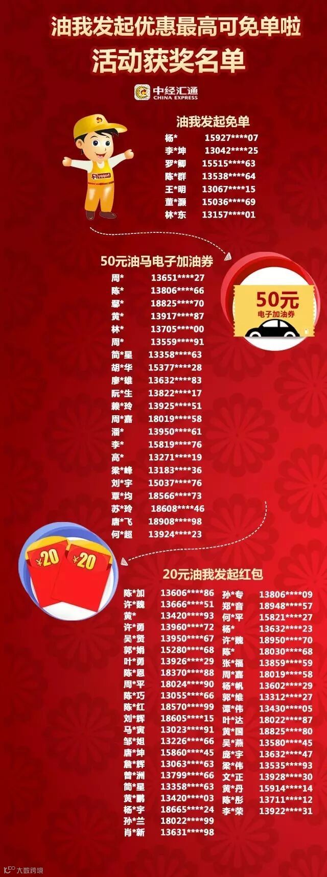 “油我发起优惠最高可免单啦”活动中奖名单 中经汇通电商