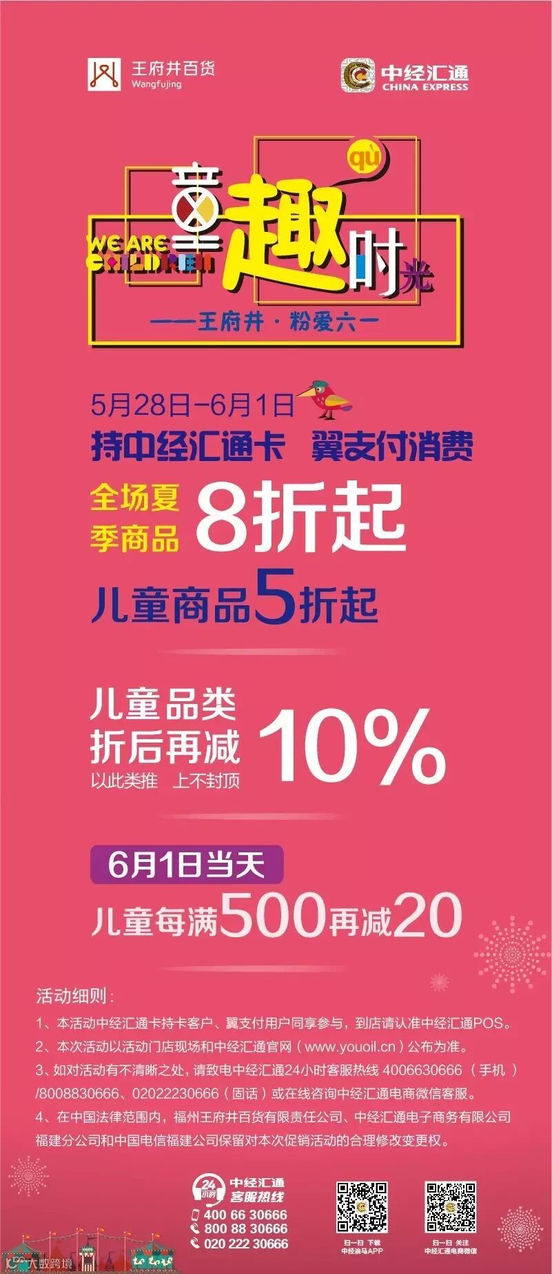 导读:2016年5月28日-6月1日,持中经汇通卡,翼支付消费,全场夏季商品8折起,儿童商品5折起!