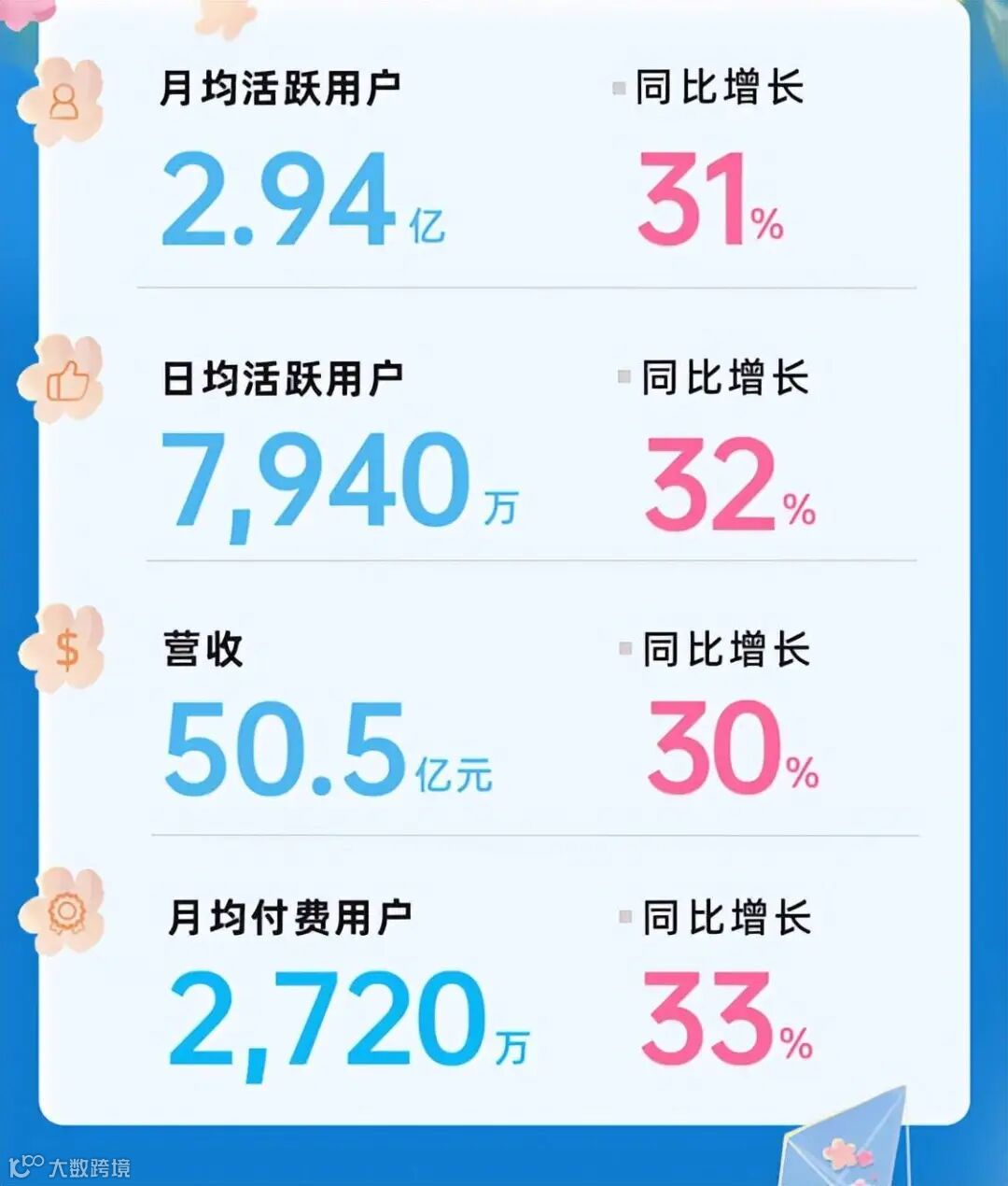 2022年6月9日晚,哔哩哔哩(Nasdaq: BILI,09626.HK,以下简称“B站”)发布了2022年第一季度未经审计的财务报告。财报显示:B站第一季度MAU(月活用户)达约2.94亿,而移动端月活用户达约2.76亿,较2021年同期分别增加31%及33%;DAU(日活用户)达7940万,较2021年同期增加32%,用户日均使用时长达95分钟,创下历史新高;月均活跃UP主数量达到了380万,同比增长75% ;月均投稿量达到1260万,同比增长63%;月均付费用户达2720万,较2021年同期增加33%。