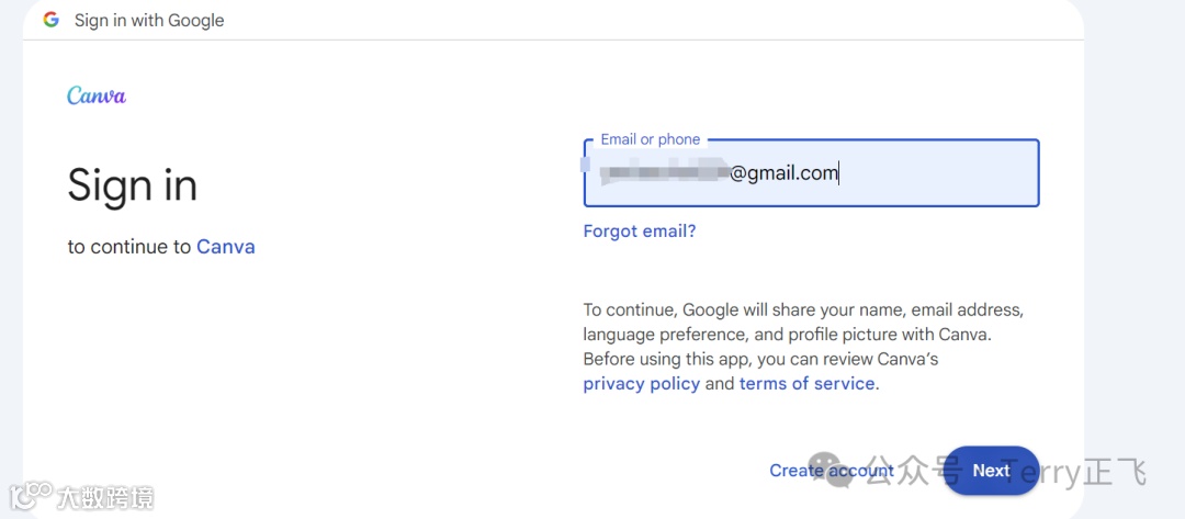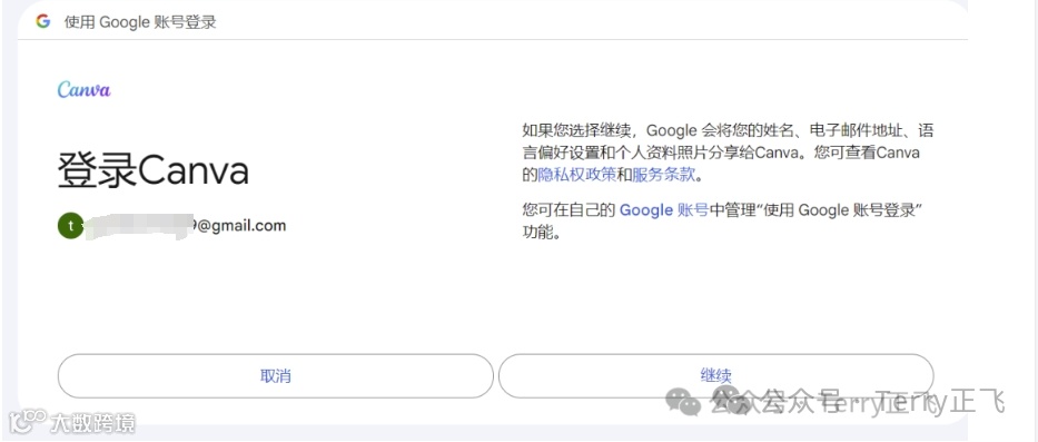 4,提示账号登录,我选的gmail邮箱。