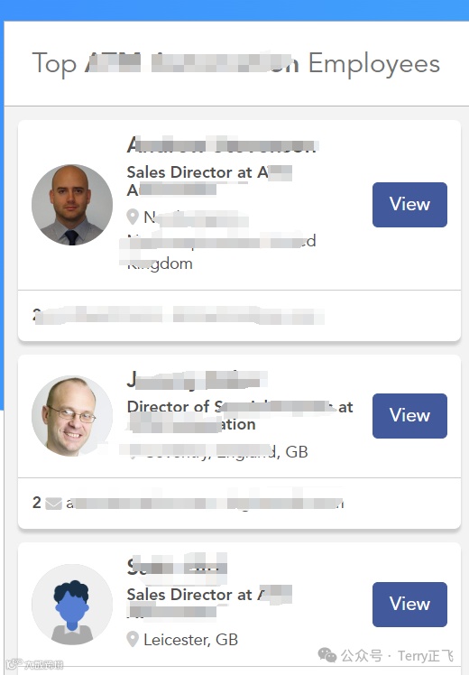 罗列了这家公司的人员和他们的联系方式,点view就能看到更多信息了。