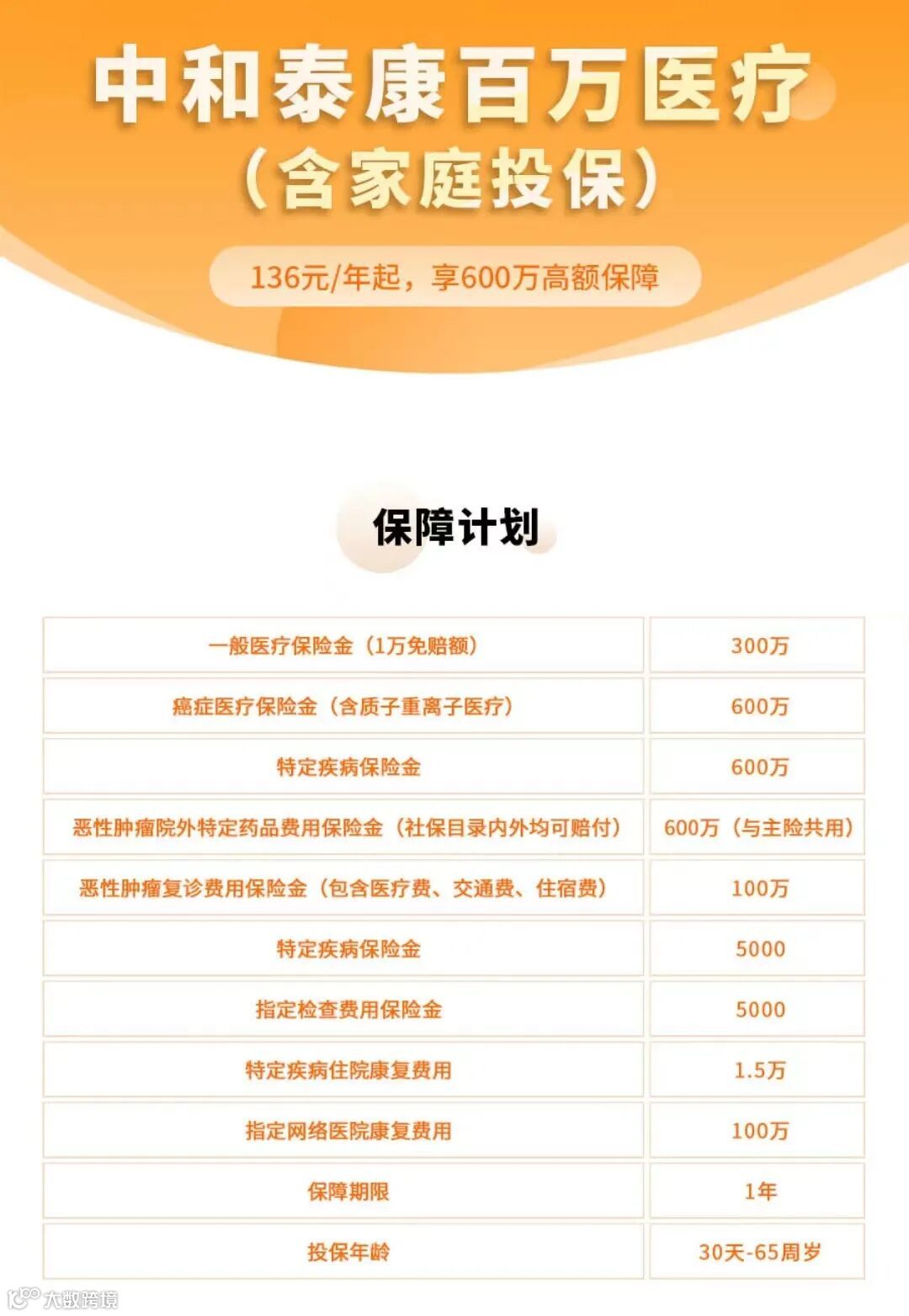 除了基本的住院责任,中和泰康百万医疗还额外拓展了4项保障:特定疾病额外给付5000元,指定检查费用保险金5000元,指定疾病住院康复费用1.5万,指定网络医院康复费用100万。