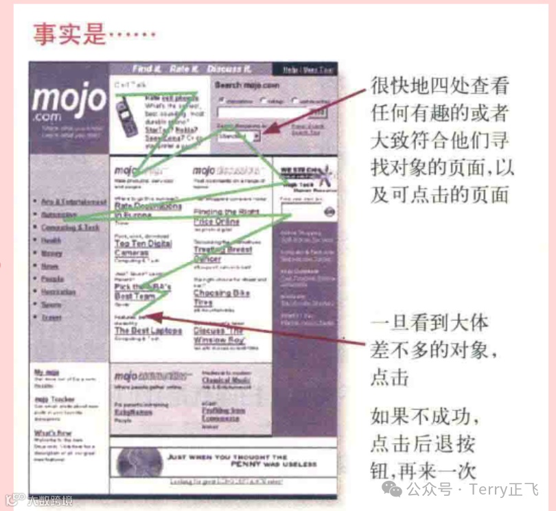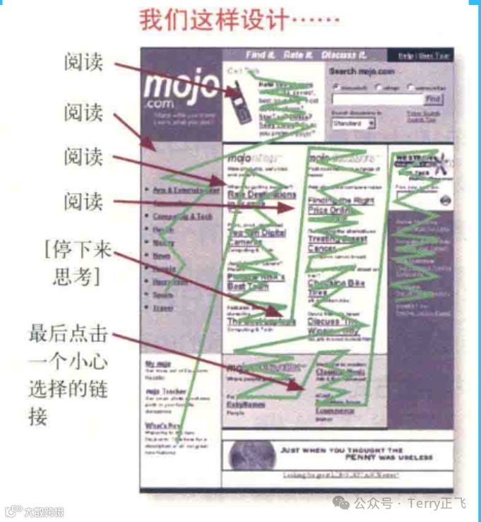 他提到的第一个点是,访问网站,我们以为客户是这样逐行去阅读: