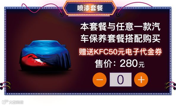 ▲280元喷漆套餐与汽车保养A、B、C、D任意套餐同时购买