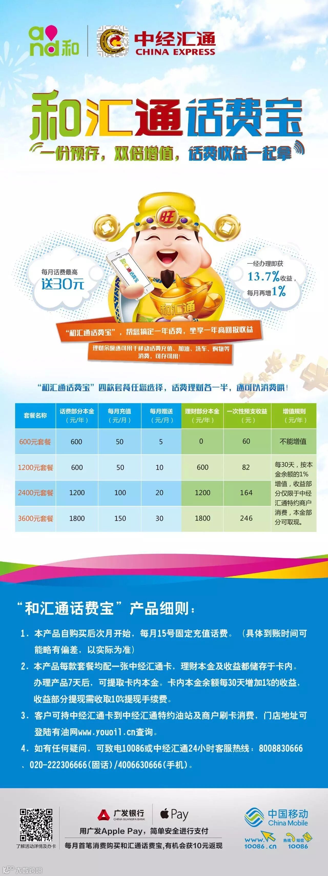 中经汇通携手中国移动暖心推出的“和汇通话费宝”