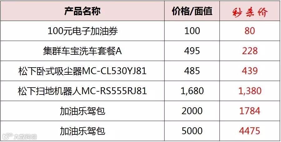 秒杀产品: