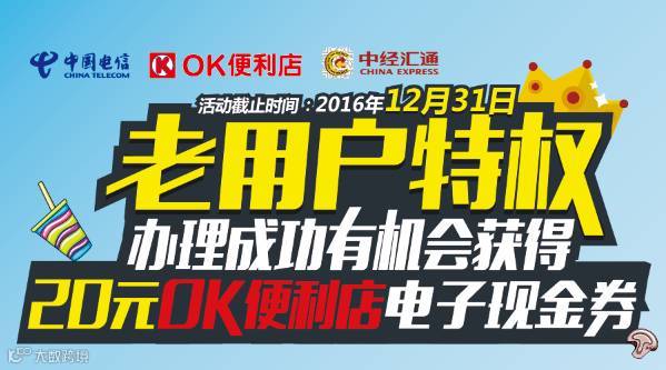 成功办理预存话费业务的用户,将有机会获得20元OK便利店电子券,可在广州市任意OK便利店消费。