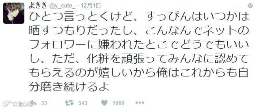 公开素颜后的Yokiki妥妥的路人甲颜值,而他素颜和妆后的反差太大,引起Twitter网友强烈好奇。