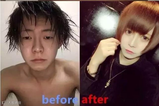 依靠整理发型和化妆看是否能变成当红男艺人。