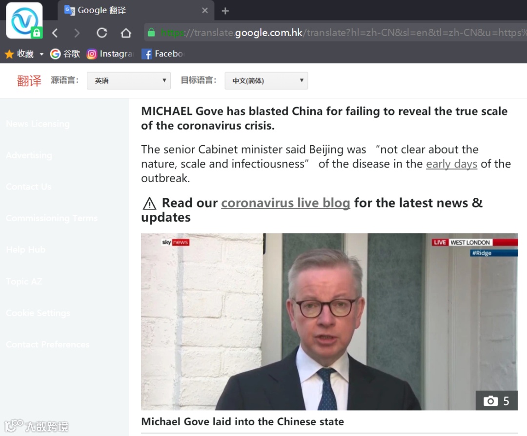 然而同时英国媒体风向大变,唐宁街内阁府部长Michael Gove将英国疫情失控归咎中国